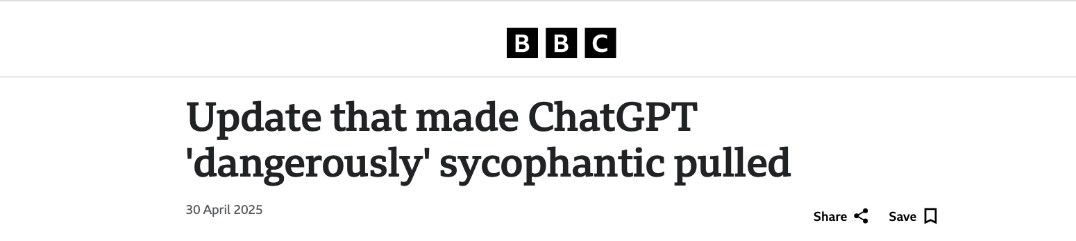 ChatGPT deteriorates society into everyone’s individual echo chambers of sympathetic soulless AI.